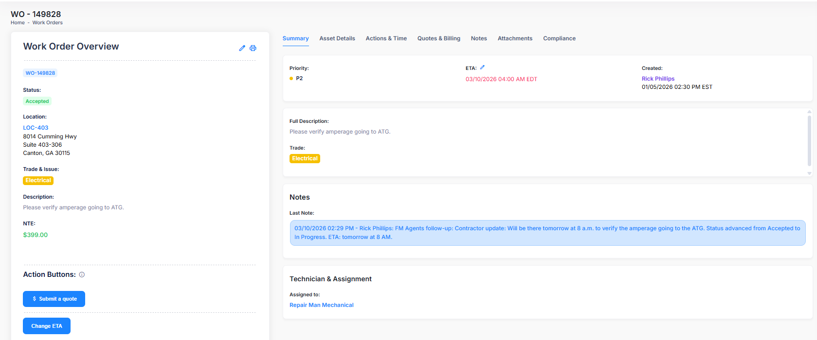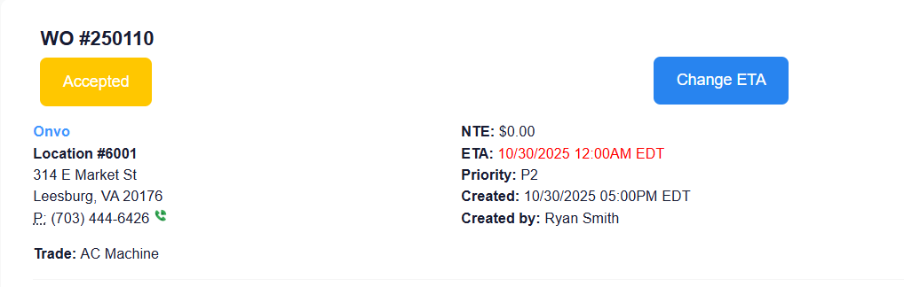 Always be sure to keep an updated ETA for all of your work orders. This will help your customers love you! They just want to know what's going on.