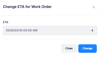 On the summary tab of every open work order you'll have the option to Change ETA.