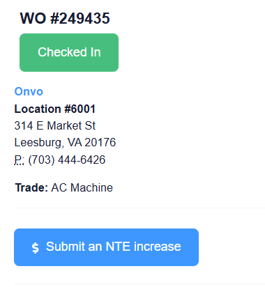 NOTE: The work order status must be "Checked In" in order to submit an NTE Increase.