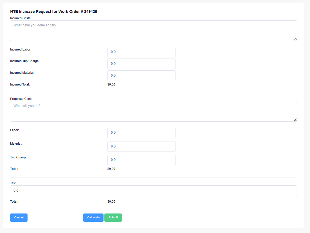 Click Calculate then Submit to send the request to the Customer. They will receive an email that the NTE Increase Request was submitted. Now you just wait for the approval!